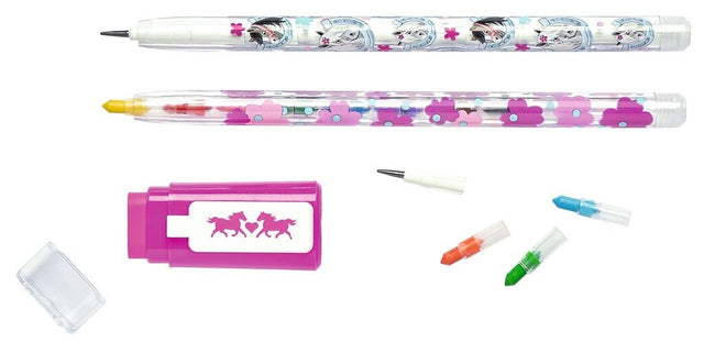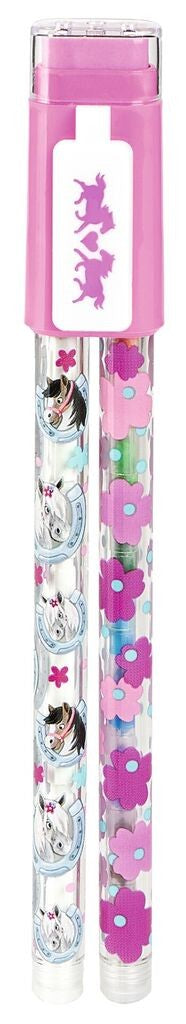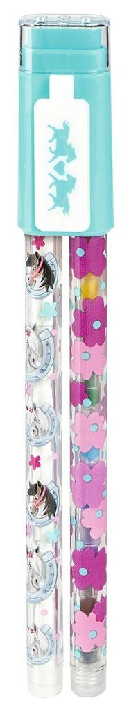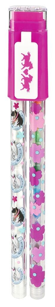 Jeder Stift hat ein wundervolles Pferdemotiv. Eine schöne Idee zur Einschulung oder als Gastgeschenk für den Kindergeburtstag.