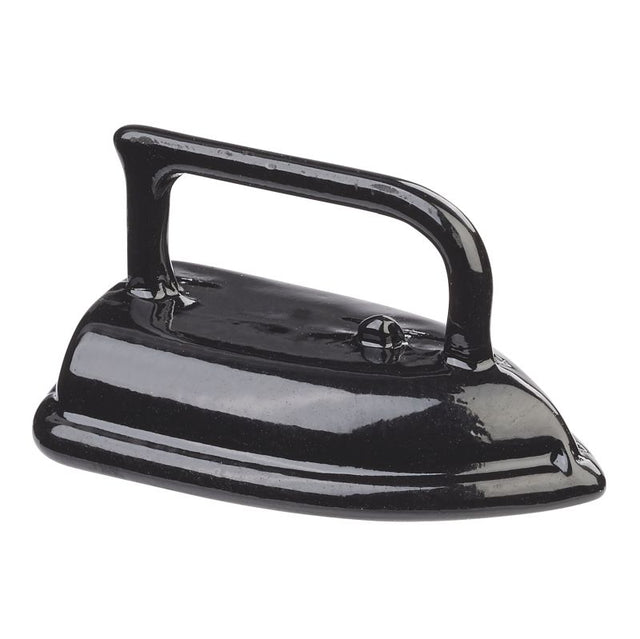 Mit diesem Bügeleisen in schwarz (2x1,2x1,1cm) kann der kleine Wichtel seine zerknitterte Kleidung bügeln.