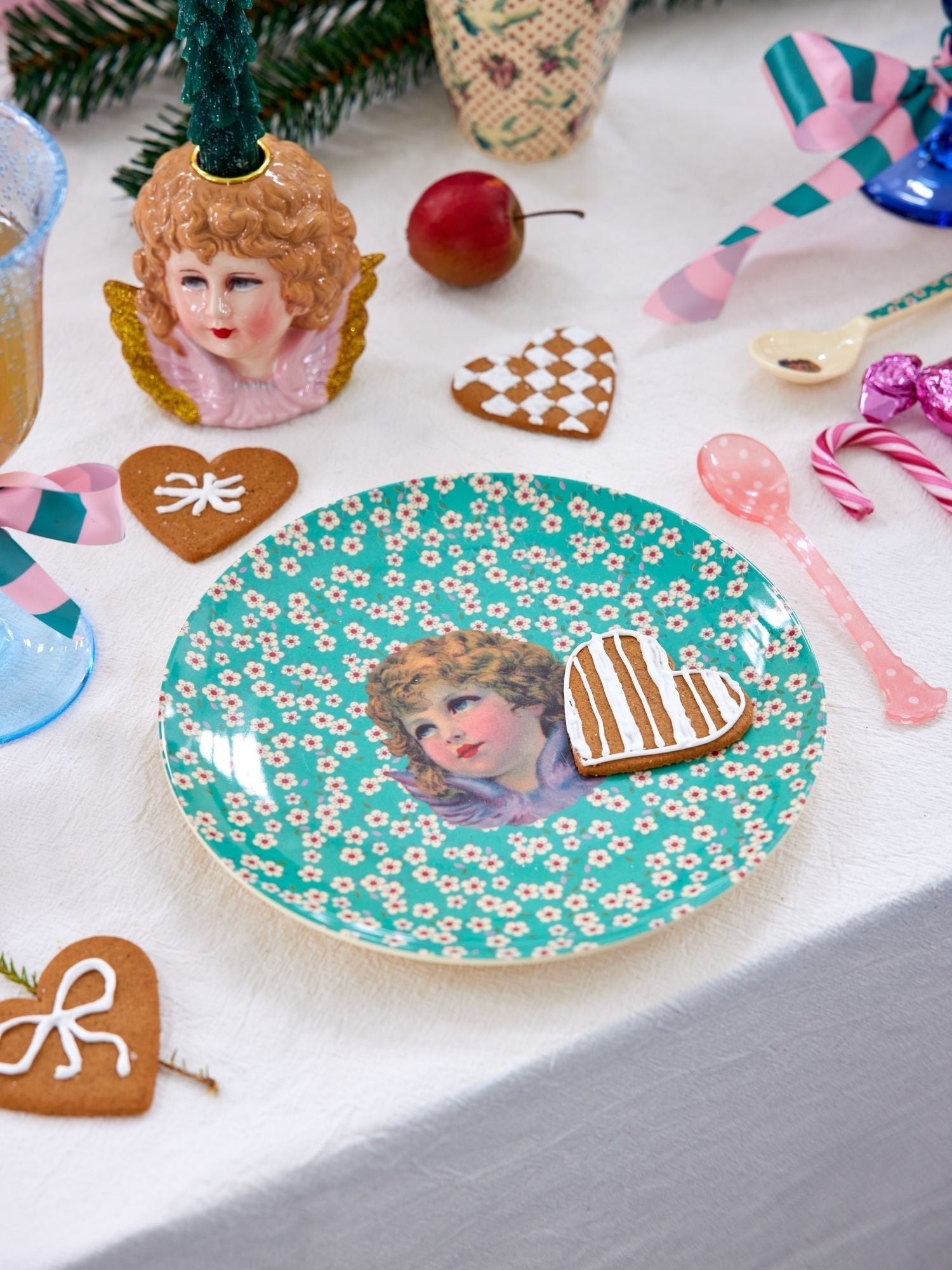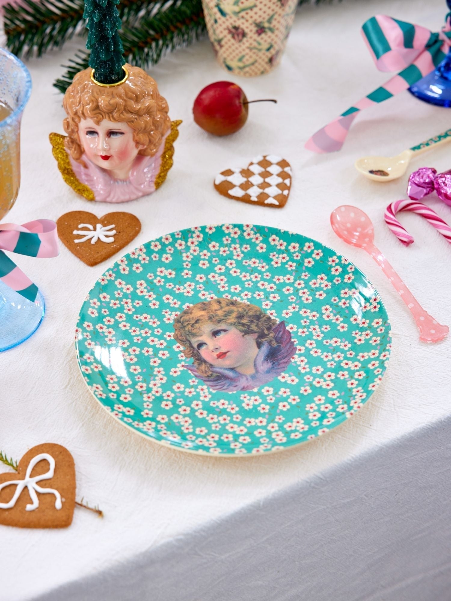 Mit unserem runden Melamin-Frühstücksteller mit grünem "Angel" Print kommt Weihnachtsstimmung auf!