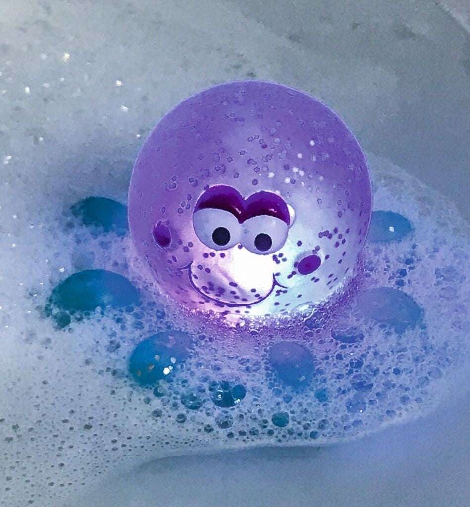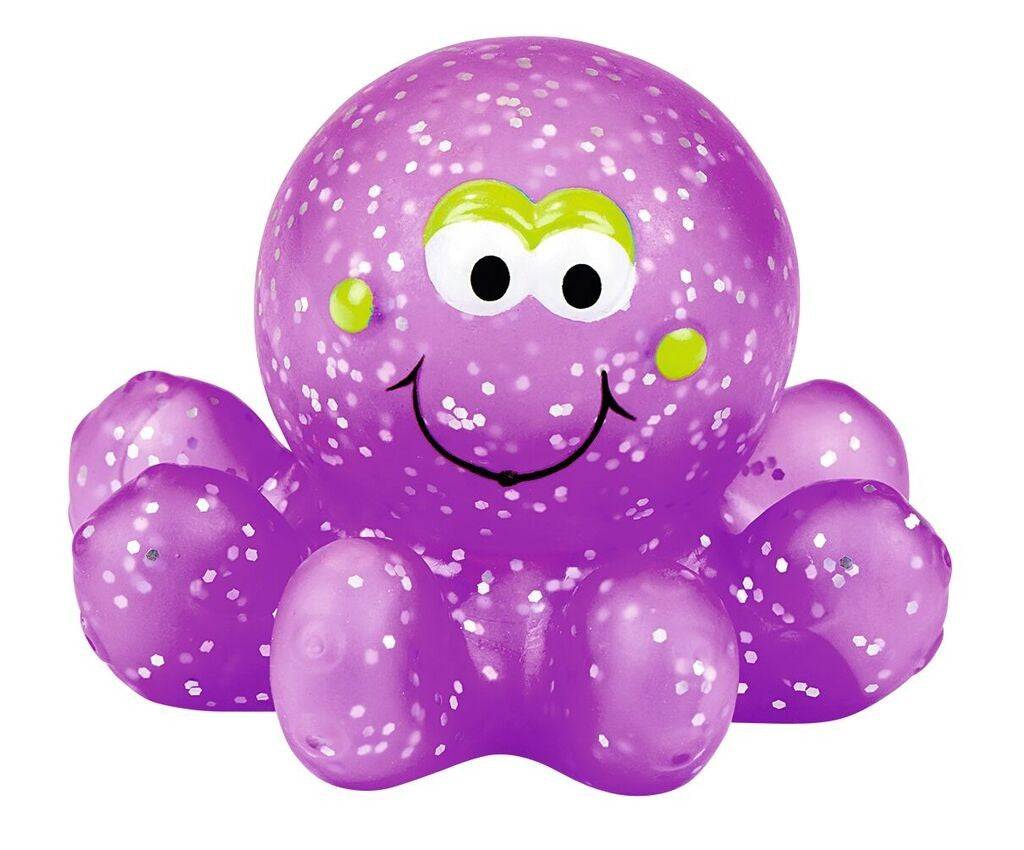 Der süße Glitzerkrake von Moses leuchtet vor Freude, wenn er in die Badewanne darf.