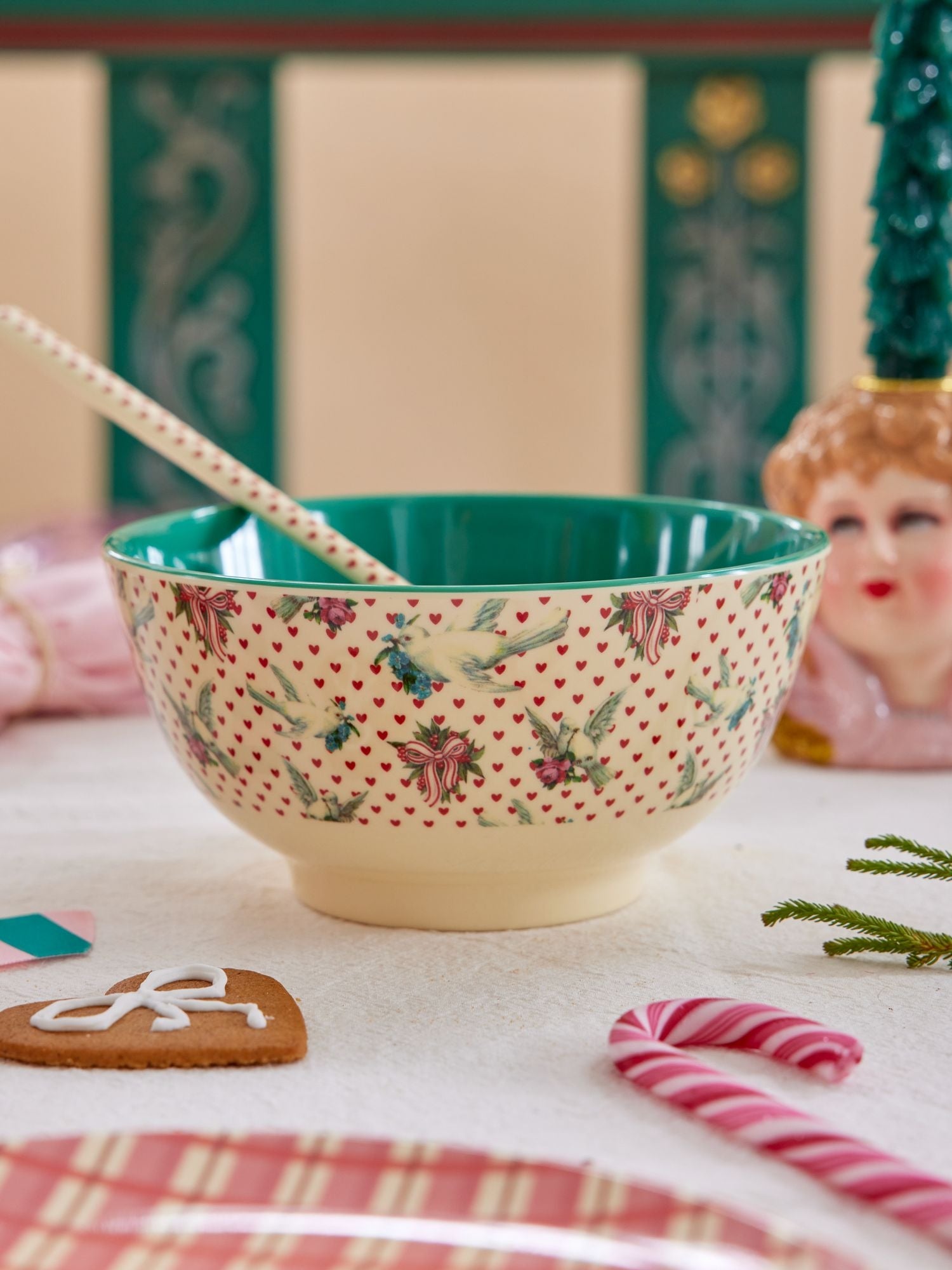 Mit dieser schönen, mittelgroßen Melaminschale mit dem niedlichen "Dove" Print, wird die schönste Zeit des Jahres noch schöner. Die Schale ist perfekt für Frühstück, Suppe, Süßigkeiten oder eine kleine Blume. Sie bietet Platz und ist vielseitig einsetzbar, sowohl im Innenraum, als auch Draußen. Verwenden Sie die Schale ganz nach Ihren Bedürfnissen! Passend dazu finden Sie auch die Becher hier in unserem Shop. Dieses Produkt aus Melamin ist praktisch, langlebig und unverzichtbar für den Alltag, Partys, Picknicks und vieles mehr ist. RICE wendet zahlreiche Ressourcen auf, um die geltenden Regeln und Vorschriften in Bezug auf Lebensmittelsicherheit und Nachhaltigkeit stehts zu erfüllen. Deshalb wird sicher gestellt, dass das Melamin von höchster Qualität, wieder verwendbar und frei von Bisphenol A und Phthalaten ist. RICE verwendet EU-zertifizierte Testberichte, die von der dänischen Veterinär- und Lebensmittelbehörde genehmigt wurden. Melamin kann in die Spülmaschine, ist aber nicht für die Mikrowelle geeignet. Modell: XMEBW- PH4DO Volumen: 700 ml Material: Melamin Maße: Durchmesser 15 cm ; Höhe 7,5 cm