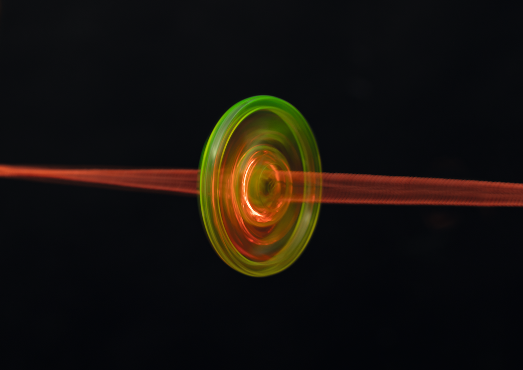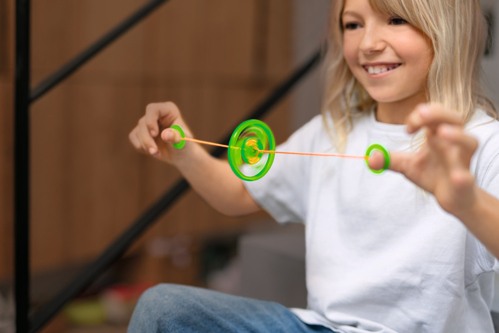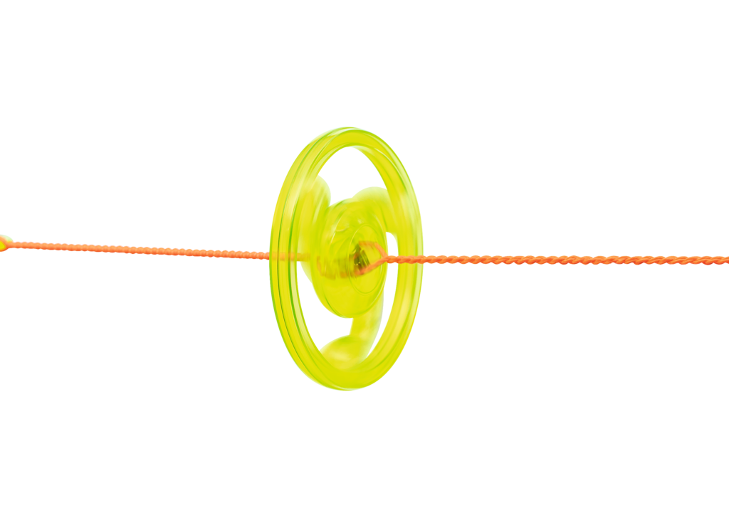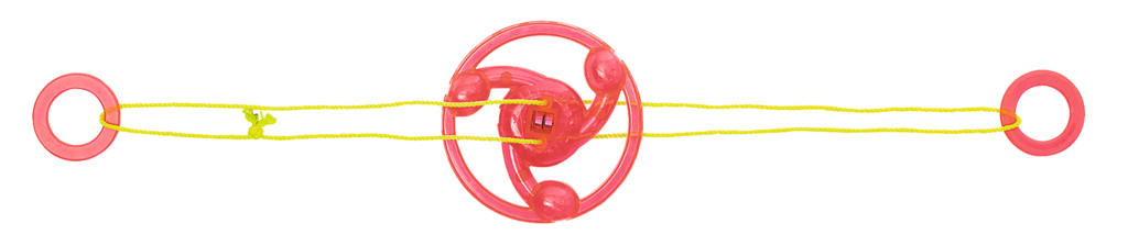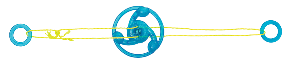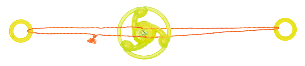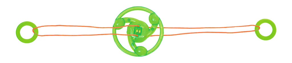Beim Aufdrehen der Schnüre wird durch Muskelkraft Energie auf diese übertragen. Kinder können die Schnüre ganz einfach selbst in den Händen halten und das Schwungrad zum Schwingen bringen, indem sie die Schnüre straffen.