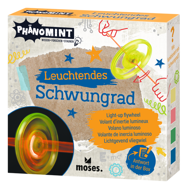 Die coolen Licht- und Soundeffekte verwandeln das Schwungrad in rot, gelb, grün oder blau in ein echtes Highlight unter den Spielzeugen und vermitteln gleichzeitig spielerisch Wissen mit den beiliegenden Informationen im Inneren der Verpackung.