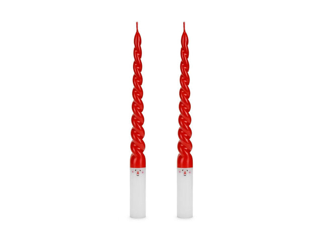 Die Weihnachtsmann Stabkerzen von Partydeco verbreiten eine zuckersüße, weihnachtliche Stimmung auf der Festtafel.