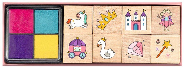 Das Stempelset von Moses beinhaltet acht verschiedene Stempel und ein vierfarbiges Stempelkissen.