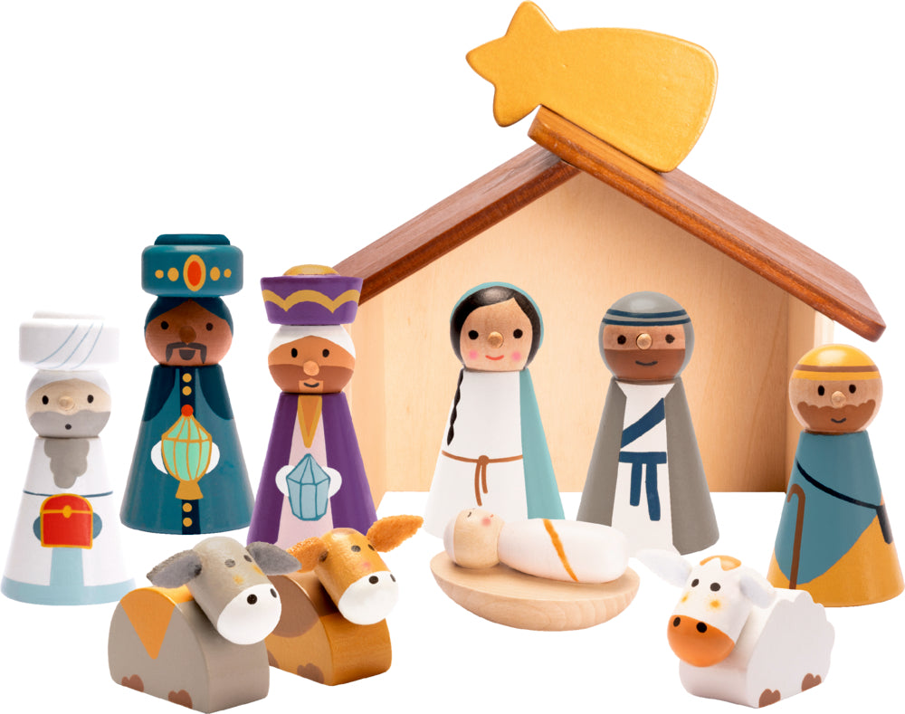 Kleine Traditionen und Rituale machen die Weihnachtszeit besonders schön: Mit dieser hochwertigen Krippe aus Holz und den zehn liebevoll bemalten Figuren