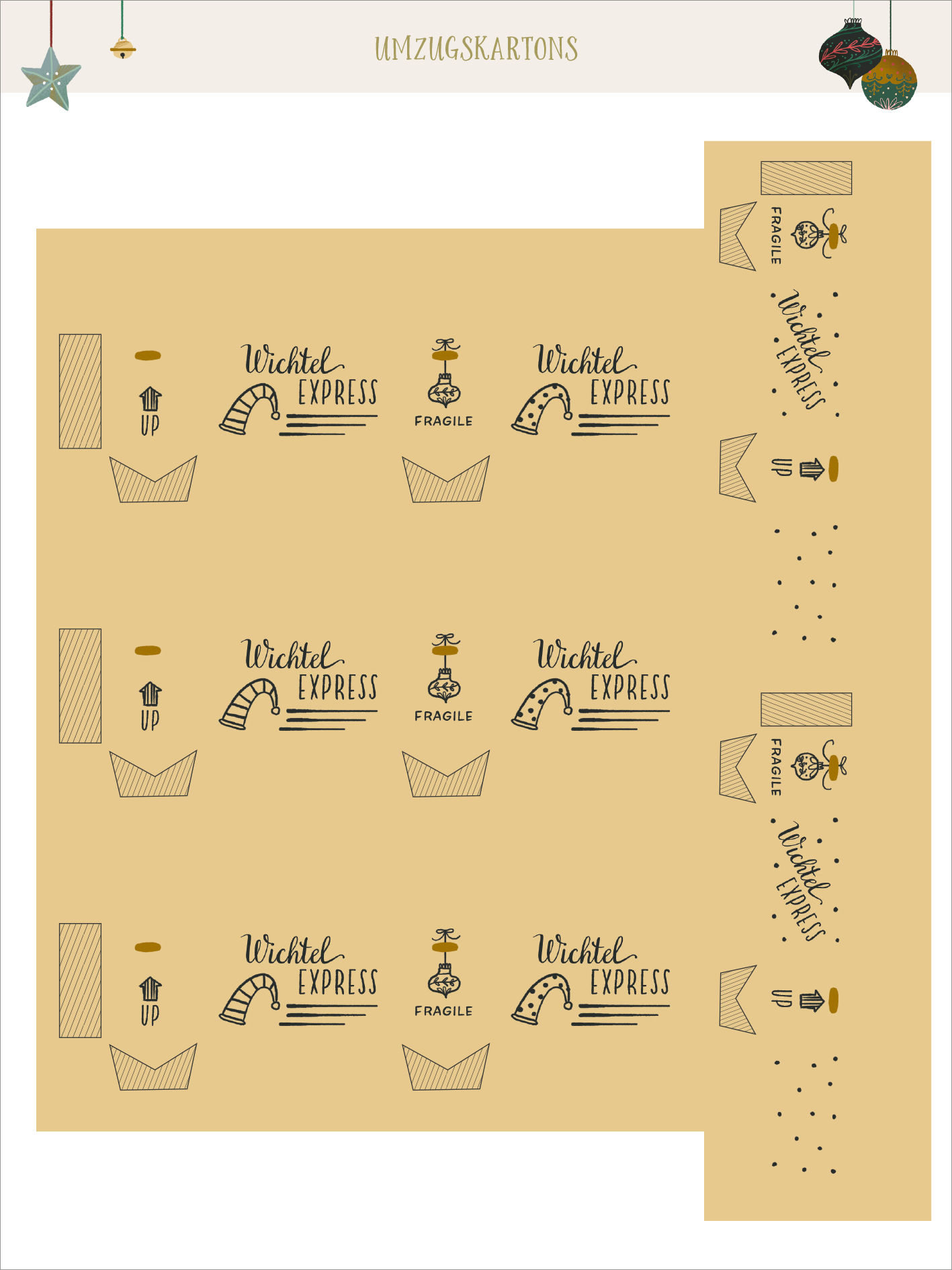 Materialien zum Sofortloslegen: Von Umzugskartons über Deko für die Wichteltür bis hin zum Weihnachts-Countdown