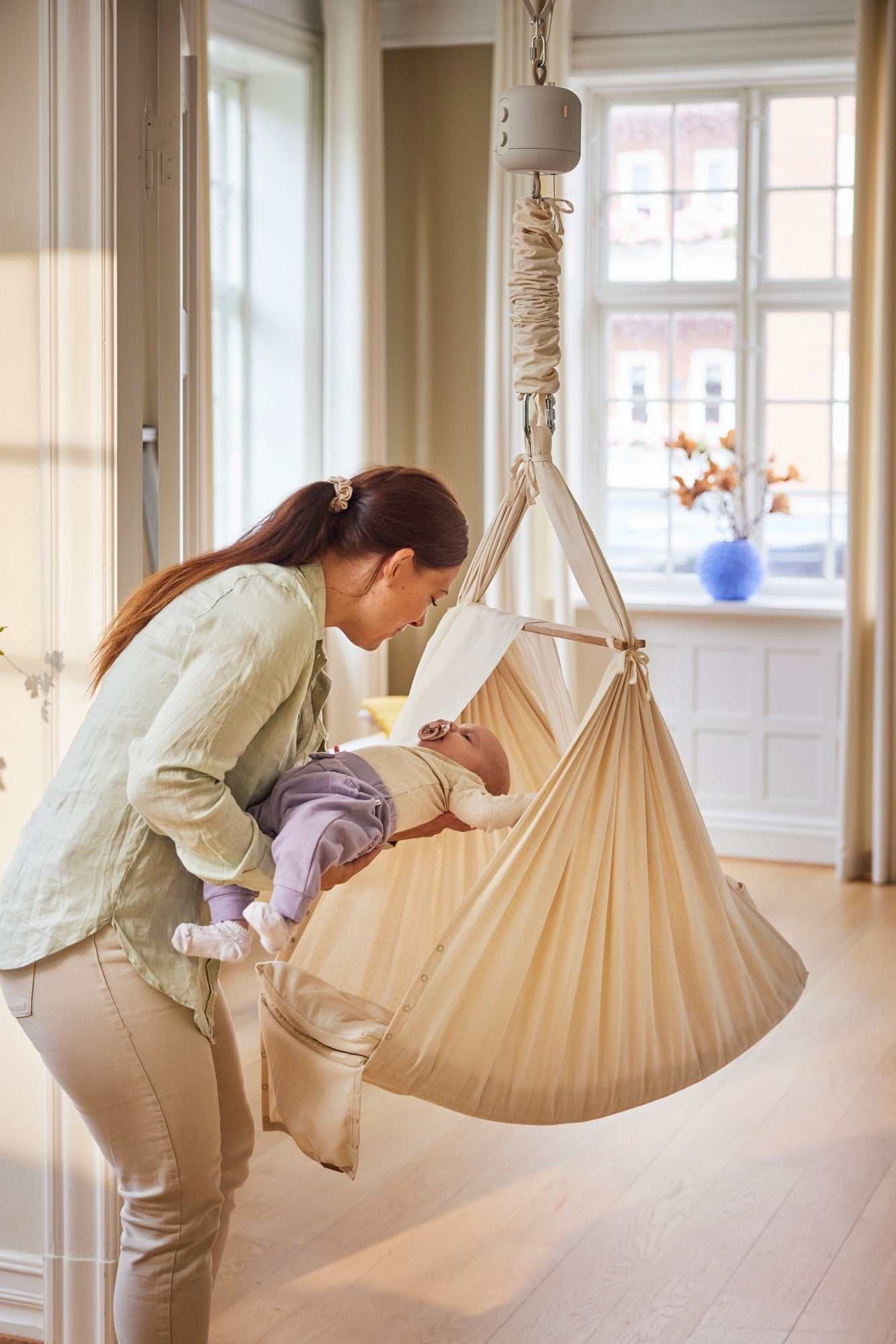 Der LeeLo01 Federwiegen- Motor mit App- Funktion sorgt für eine kontinuierliche sanfte Bewegung der Wiege, ohne dass Sie manuell schaukeln müssen.