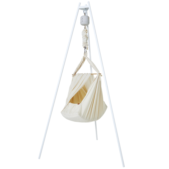 Federwiegen Set/ Wiege+ Motor+ Ständer - weiß/natur/grau ist auf Lager und wird versandt, sobald es wieder verfügbar ist