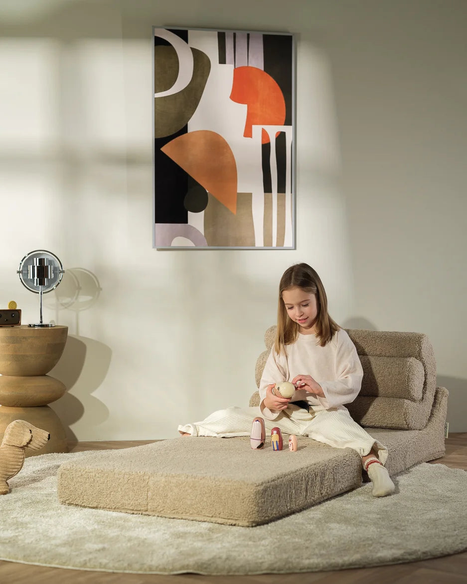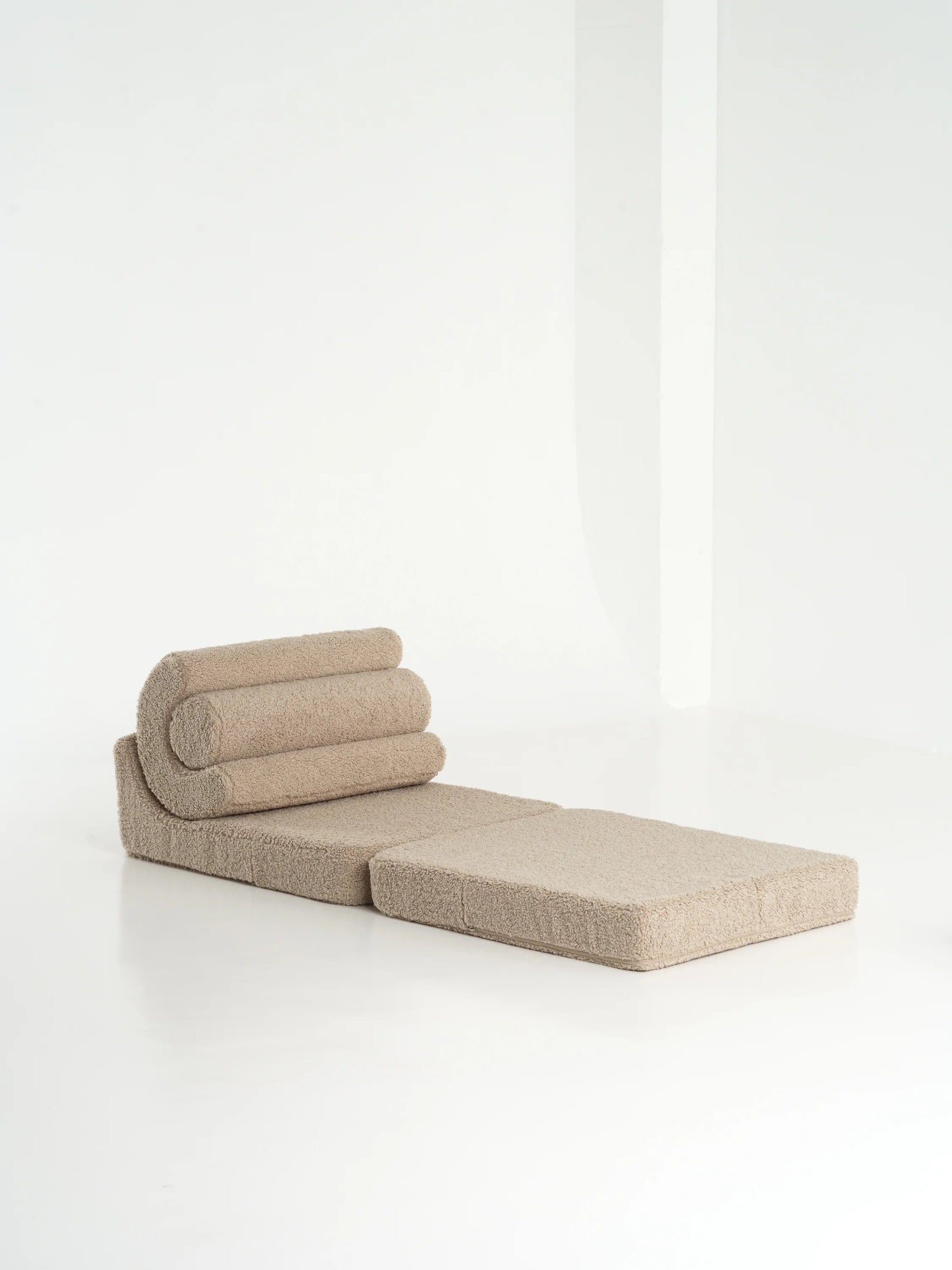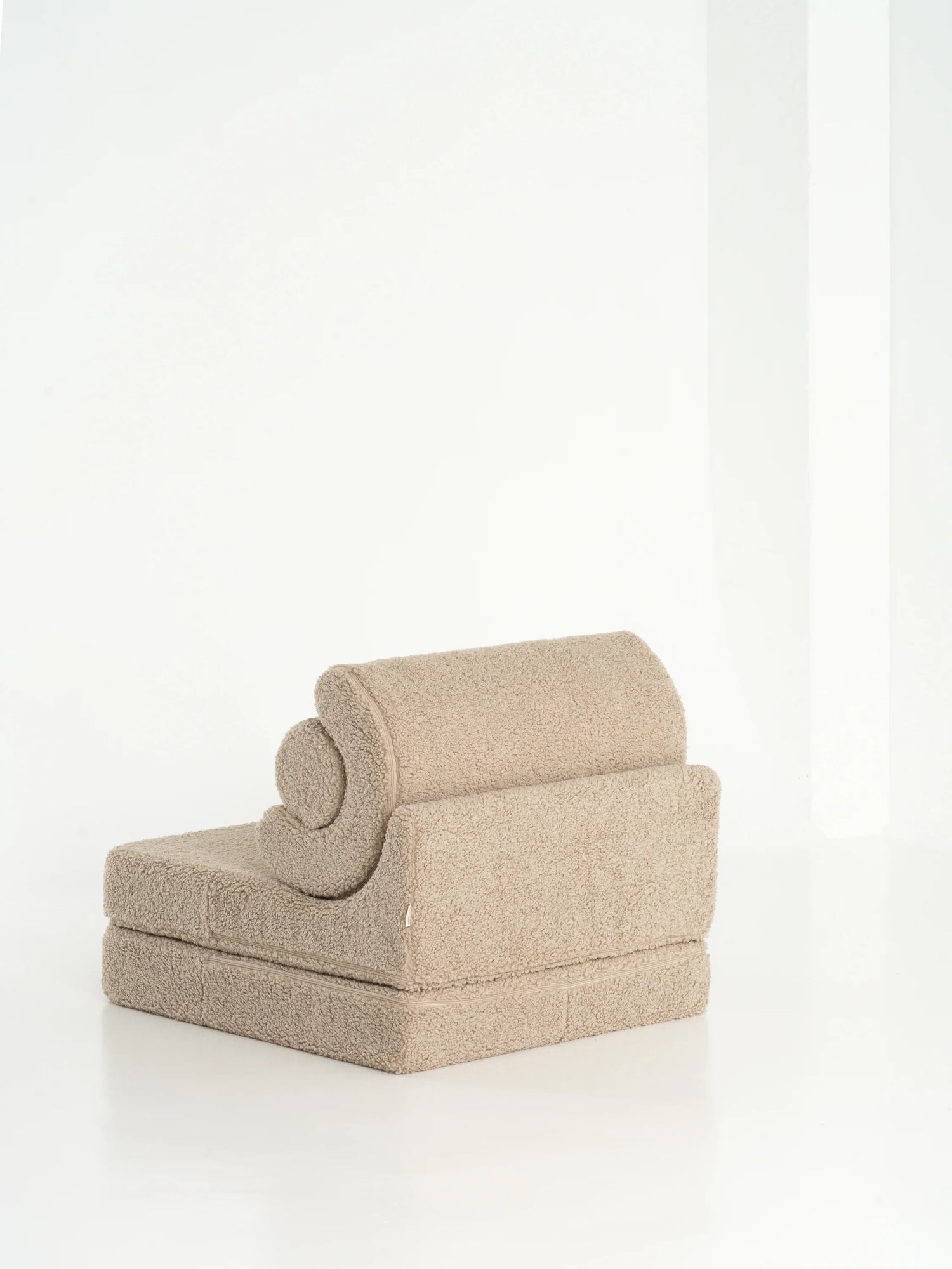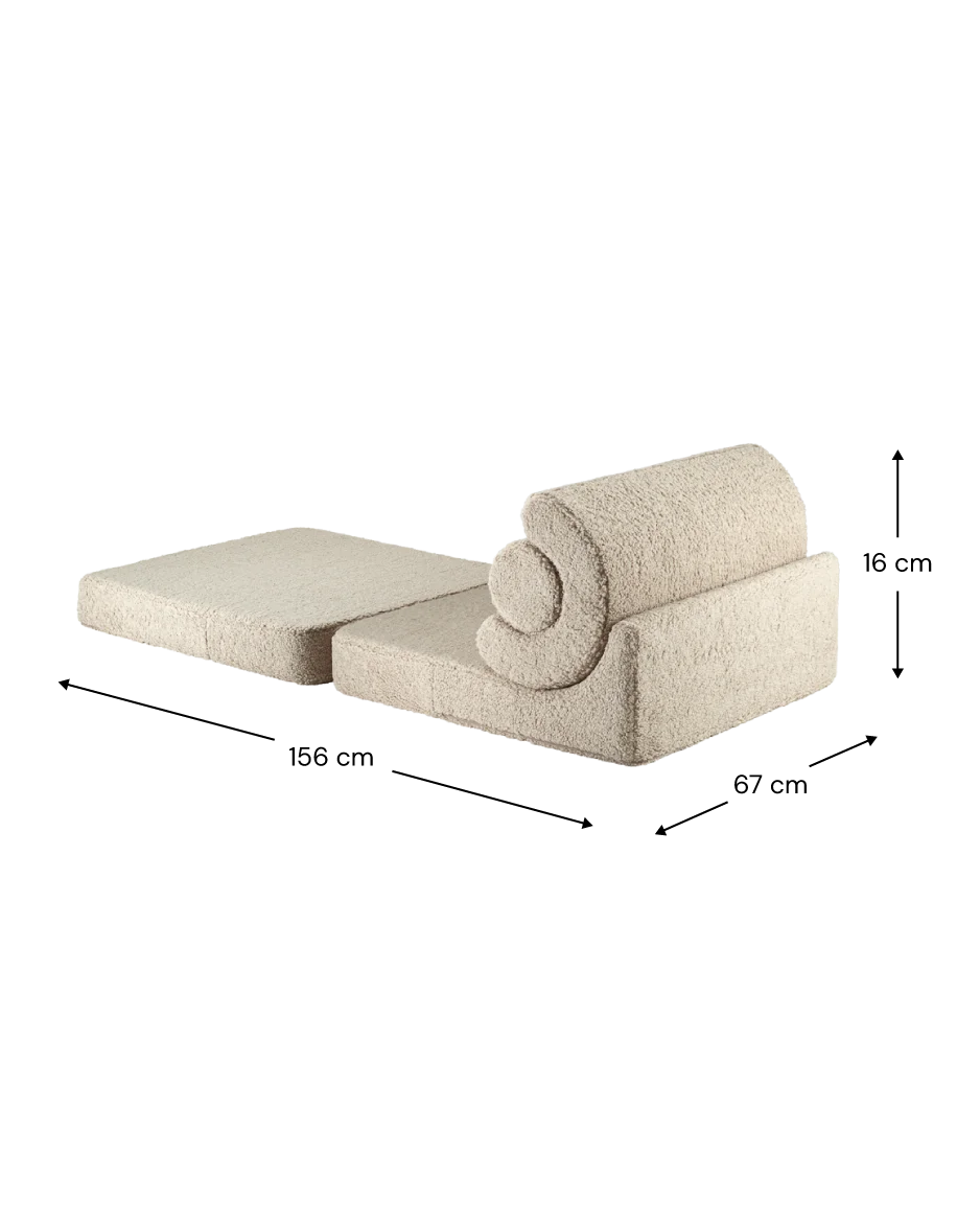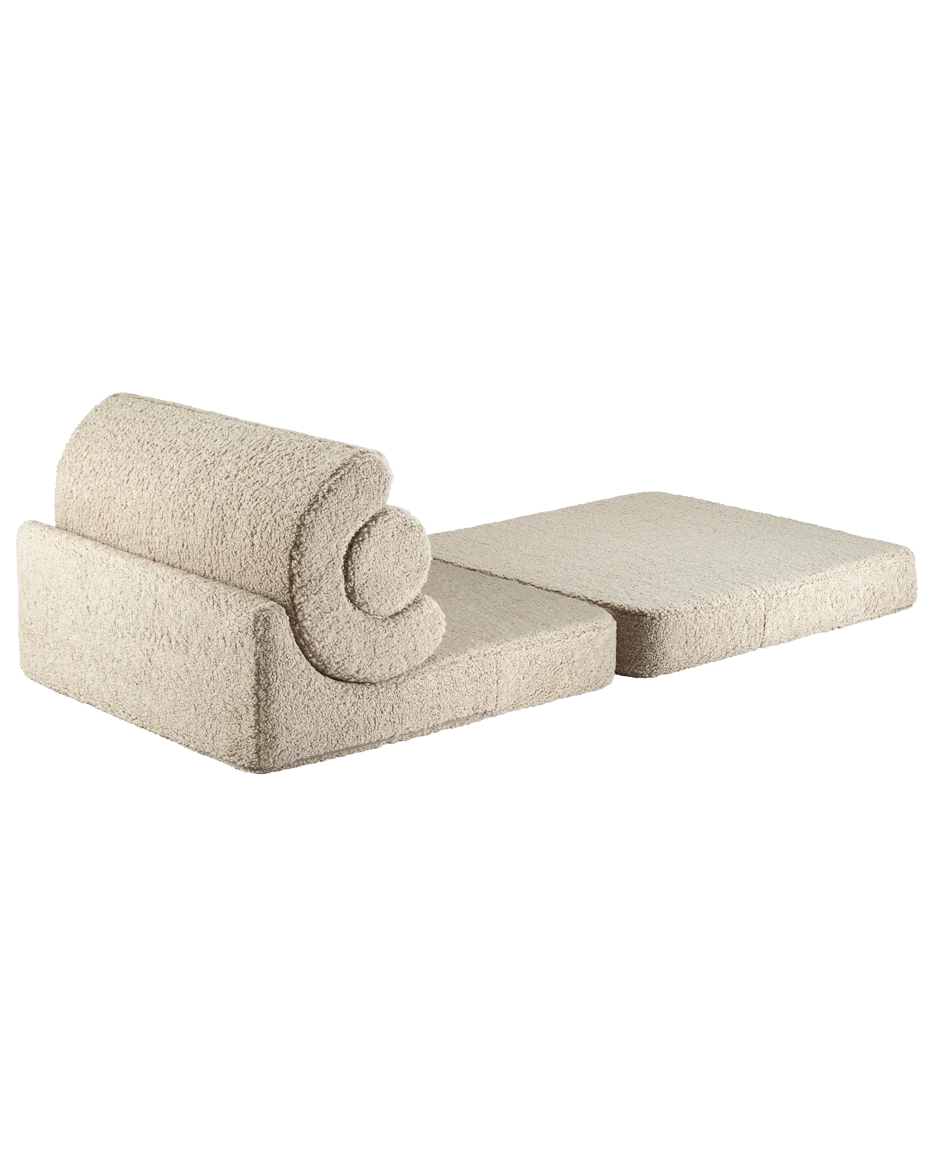Hergestellt aus OEKO-TEX® zertifiziertem Teddy-Stoff, der für seine Weichheit und angenehme Haptik bekannt ist. Dank seiner drei separaten Teile ermöglicht der Flipster flexible Konfigurationen und individuelle Anpassung.