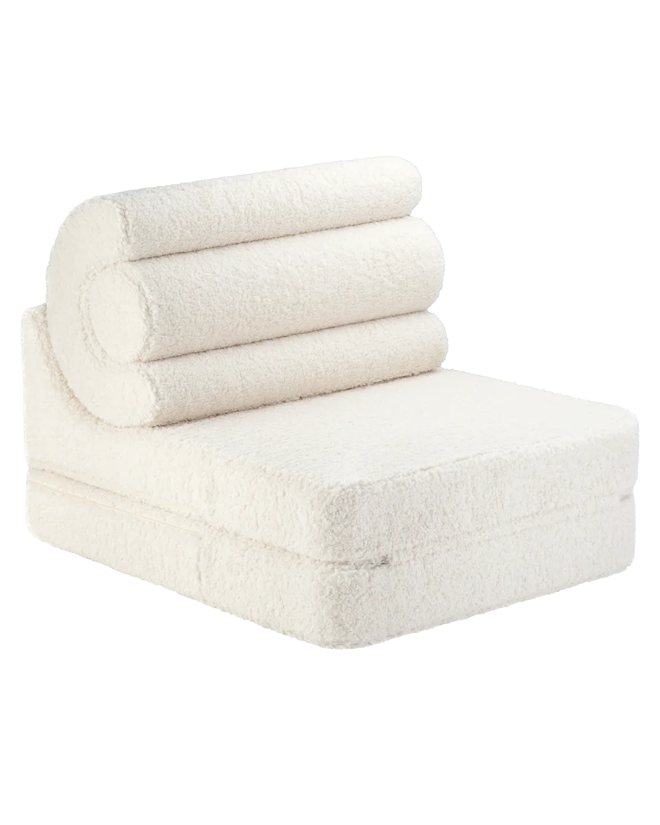 Der Flipster lässt sich mühelos von einem bequemen Sessel in ein Kinderbett oder eine Spielhöhle verwandeln. Die verstellbare Rückenlehne und die größere Sitzfläche bieten noch mehr Komfort.