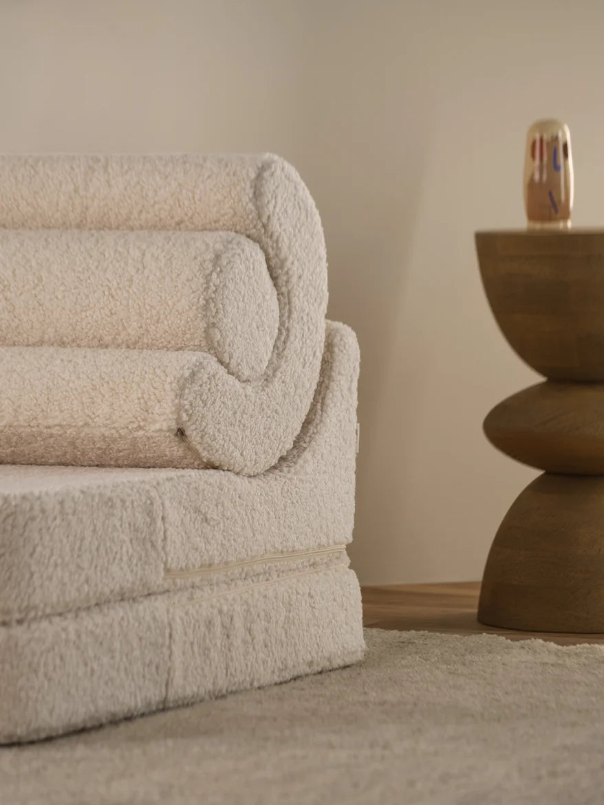 Hergestellt aus OEKO-TEX® zertifiziertem Teddy-Stoff, der für seine Weichheit und angenehme Haptik bekannt ist. Dank seiner drei separaten Teile ermöglicht der Flipster flexible Konfigurationen und individuelle Anpassung.