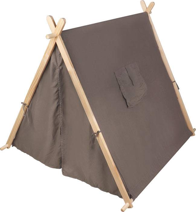 Das Spielzelt taupe von small foot ist ein geräumiges Indoor-Spielzelt aus robustem Holz und Stoff, das als idealer Rückzugsort für kreative Spielstunden im Kinderzimmer dient.