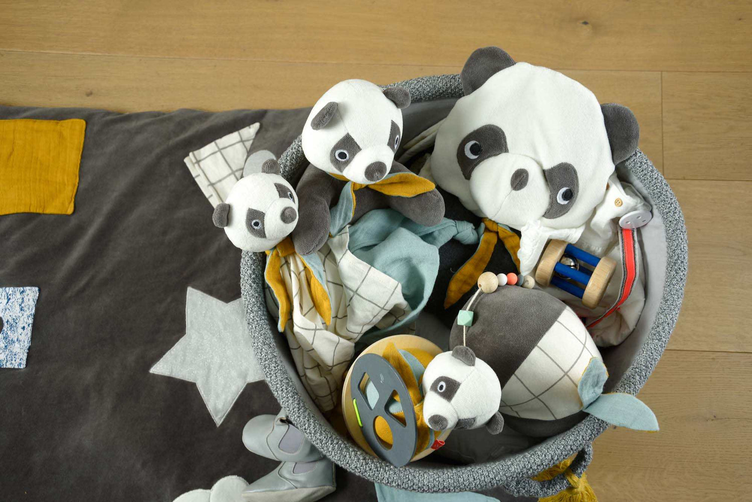 Mit unserem Storage-Set Panda von Kikadu, macht aufräumen plötzlich richtig Spaß! Die Aufbewahrungskörbe gibt es in drei verschiedenen Größen. Sie bieten viel Platz für Spielsachen, Decken und Co. Durch ihr natürliches Design mit verspielten Details aus ökologischen Materialien passen sie perfekt in jedes Kinderzimmer oder ins Wohnzimmer.