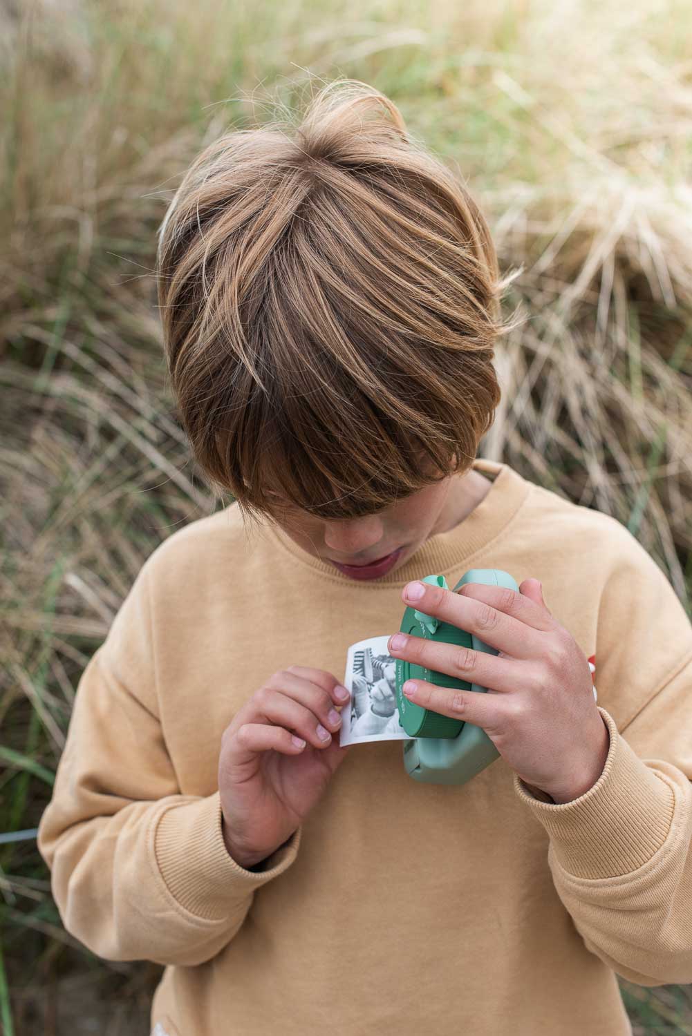 Tauchen Sie ein in die Welt der Fotografie mit der stilvollen Dino- Sofortbildkamera von The Zoofamily.