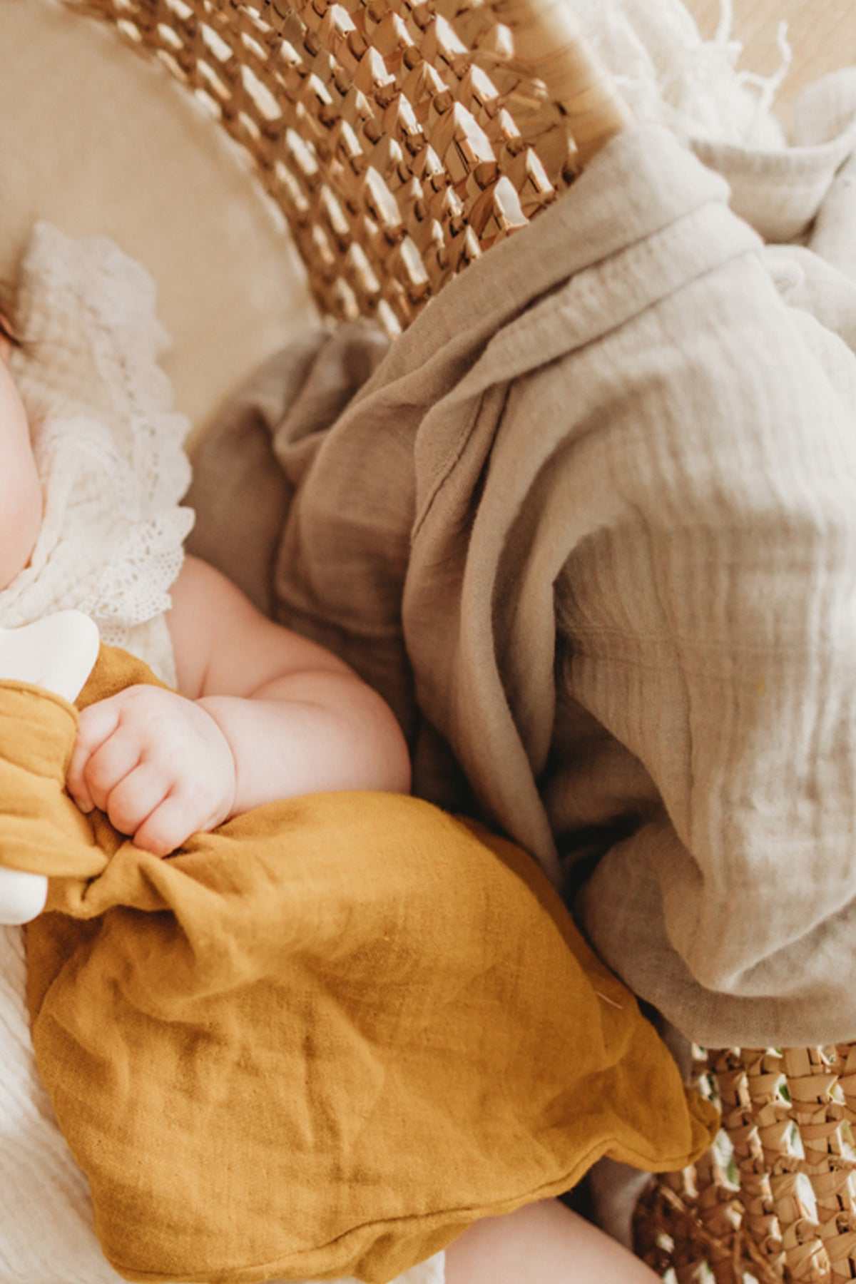 Das großes Musselin Tuch von Kikadu, eignet sich perfekt als Spucktuch, als funktionale Unterlage, als Schnuffeltuch oder auch als Schal.