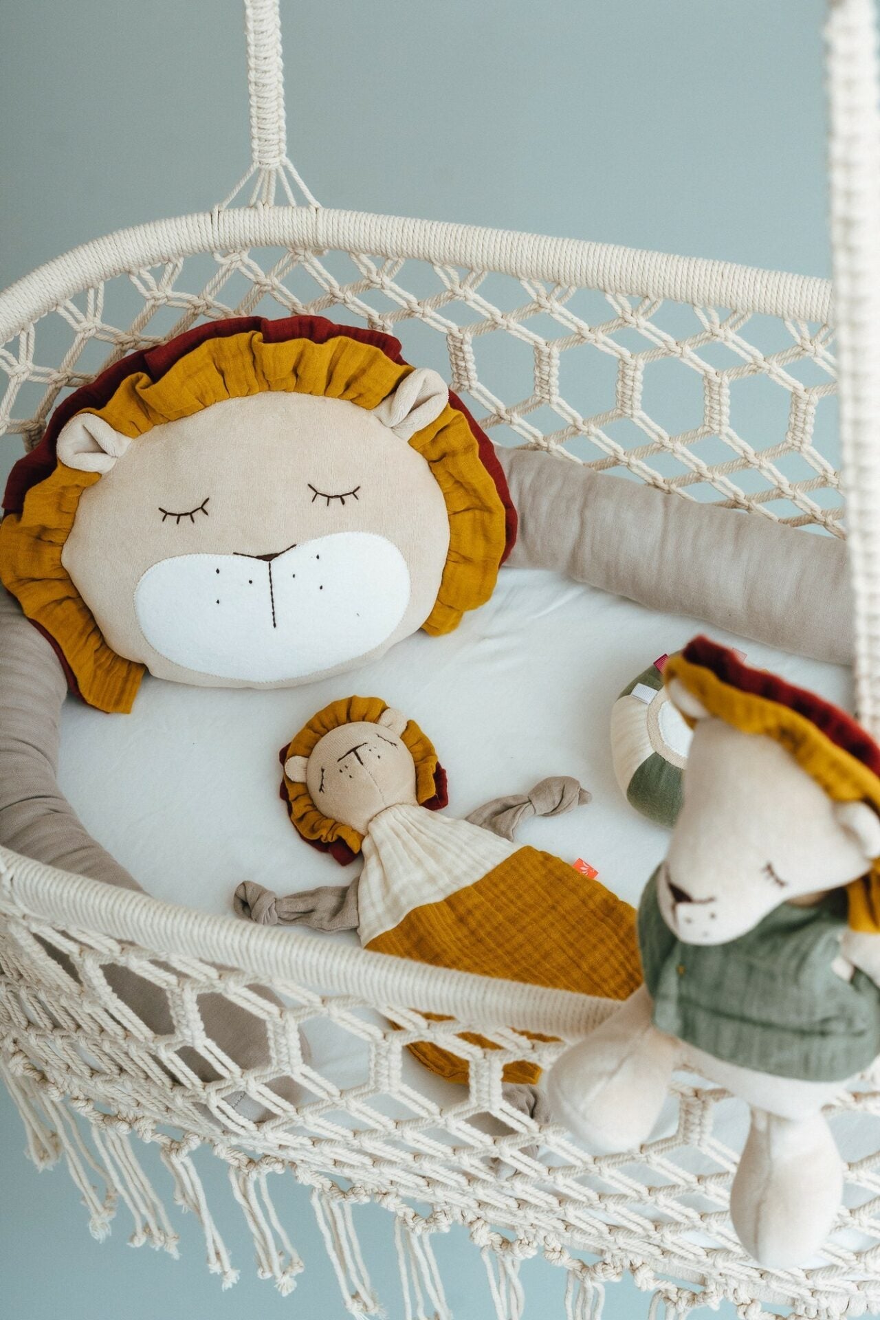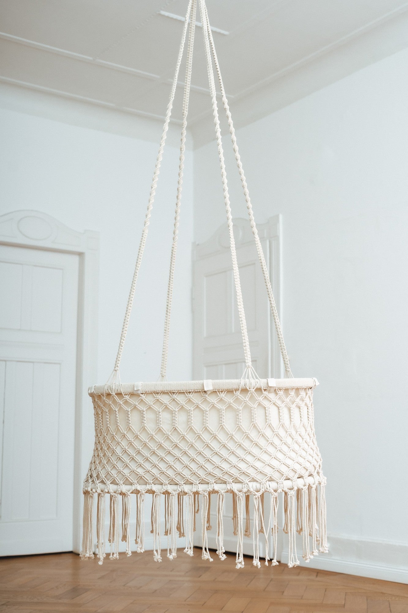 Die Wiege wird von talentierten Handwerkerinnen von Hand in Indien gefertigt, mit außergewöhnlicher Makramee-Knüpfkunst gefertigt. Jedes Stück ist ein Einzelstück.