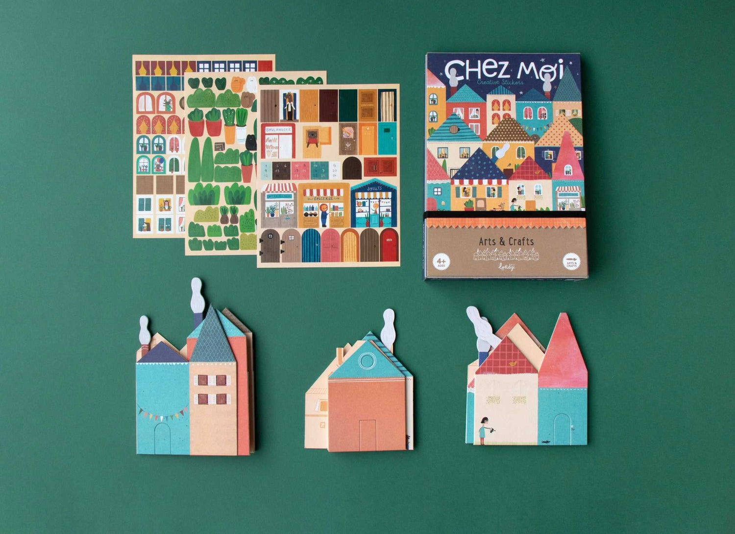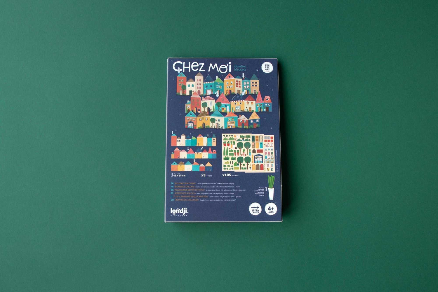Baue und dekoriere Häuser mit dem Spiel Chez Moi von Londji. Das Spiel enthält 3 Häuserstraßen, die lustig mit den 185 Aufklebern beklebt werden können. Mach Dir Deine Stadt, so wie du sie möchtest!