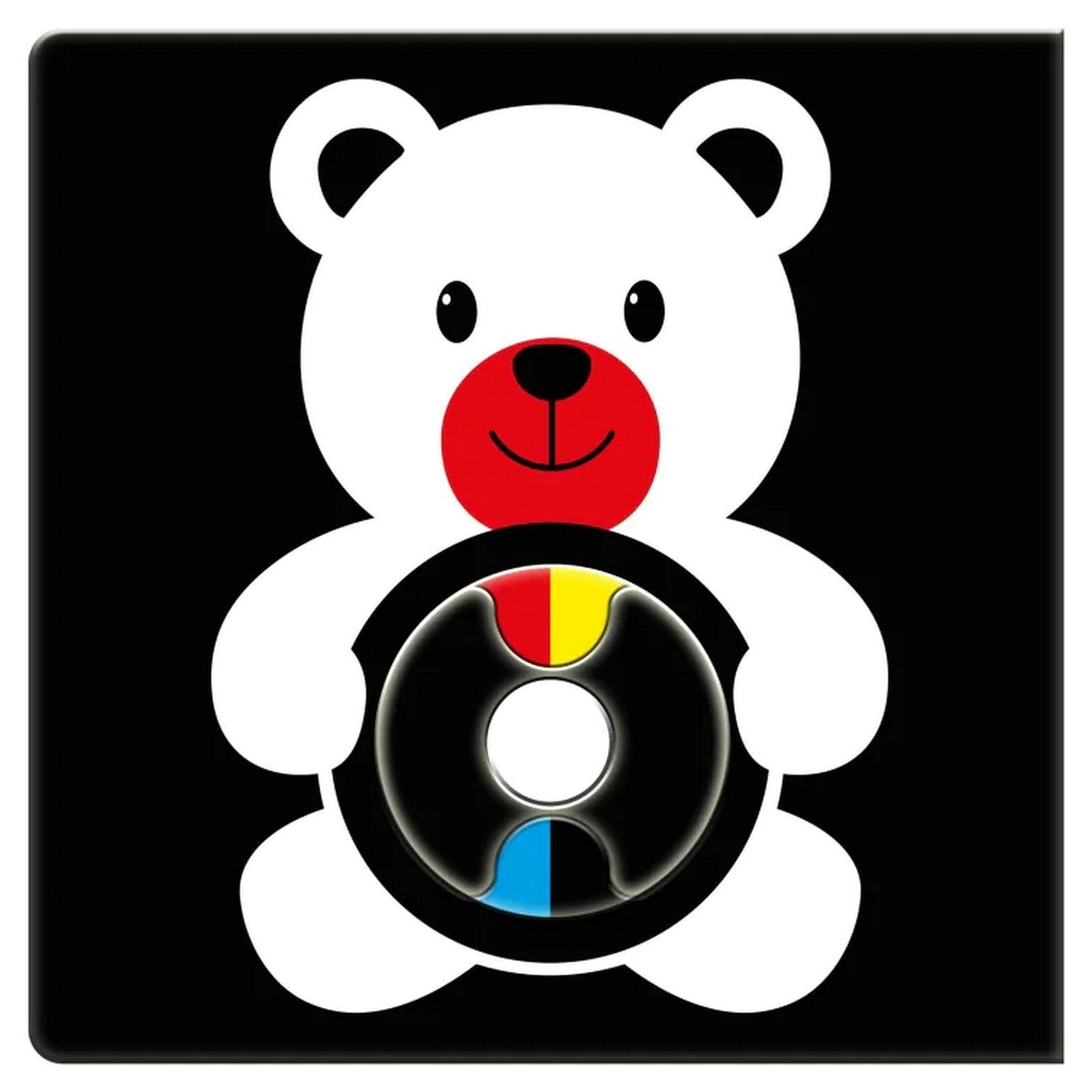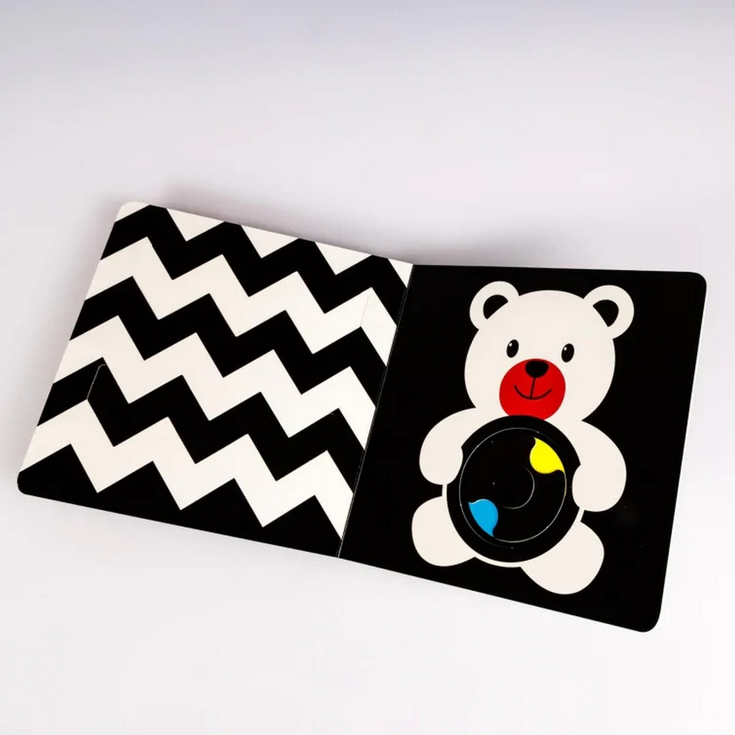 Das erste Spielbuch mit starken Kontrastbildern ist ideal für die Kleinsten in ihrem ersten Lebensjahr. Schwarz-weiß-grafische Motive, ergänzt durch ausgewählte leuchtende Farben, ziehen sofort die Aufmerksamkeit Ihres Babys auf sich und fördern die visuelle Entwicklung auf spielerische Weise. Mit vielen Schiebern, Stanzen, Fühlstrukturen, Spiegeln und einer großen Stoff-Knister-Klappe regt das Buch zusätzlich die motorische Entwicklung an. Vom zufälligen Patschen bis zum gezielten Greifen – Ihr Baby trainiert spielerisch seine Hand-Augen-Koordination. Gleichzeitig bietet es jede Menge Gelegenheiten für Eltern-Kind-Interaktion und gemeinsames Entdecken. Das Spielbuch wurde gemeinsam mit einer Entwicklungspsychologin konzipiert und unterstützt gezielt die frühkindliche Entwicklung. Ob beim Staunen über spannende Muster, beim Fühlen der unterschiedlichen Materialien oder beim Beobachten des eigenen Spiegelbilds – das Buch ist ein kleines Feuerwerk für die Sinne Ihres Babys. Perfekt auch als Geschenk zur Geburt. Schau mal, was dein Baby kann: Dieses Buch lädt alle ein zum Mitmachen und Entdecken. Tipps und Anregungen auf der Buchrückseite helfen dabei, jede Spielsession besonders bereichernd zu gestalten. Modell: 117355 Altersempfehlung: 3 – 9 Monate Materialien: Papier, Stoff, Kunststoff (Fühl- und Schiebeelemente), Spiegelmaterial, Knisterfolie Besonderheiten: Konzipiert in Zusammenarbeit mit Entwicklungspsychologen, Tipps und Anregungen auf der Buchrückseite Funktionen: Schieber, Stanzen und bewegliche Teile; Fühlstrukturen für sensorische Anregung; kuschelweiche Knister-Klappe; beweglicher Spiegel Entwicklungsförderung: visuelle Stimulation durch starke Kontraste; Motorik-Training vom Patschen zum gezielten Greifen; Förderung der Eltern-Kind-Interaktion Warnhinweis: Nur unter Aufsicht von Erwachsenen verwenden. Kleine Teile können verschluckt werden. Nicht für Kinder unter 3 Monaten geeignet.
