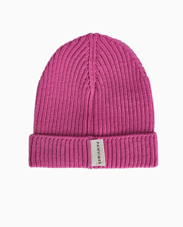 Die Mütze aus pinker Wolle lässt sich perfekt zu der TOI ET MOI Kollektion kombinieren. Ein wunderbarer Mini-Me Look.