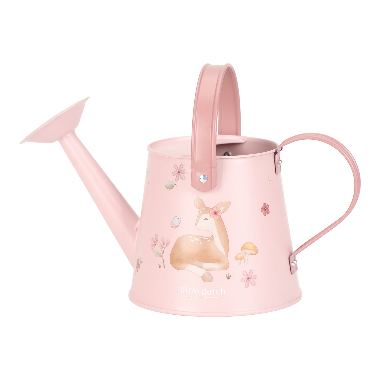 Die Gießkanne "Fairy Garden" von Little Dutch ist das ideale Werkzeug, um Kinder spielerisch an die Gartenarbeit heranzuführen. Mit ihrem niedlichen Design, das ein süßen Reh und eine zauberhafte Fee zeigt, begeistert sie kleine Gärtnerinnen und Gärtner im Handumdrehen. Die Gießkanne besteht aus robustem Metall in sanften rosa- Tönen und ist speziell für kleine Hände konzipiert, um das Blumengießen, Spielen im Sandkasten oder Planschen im Garten zu erleichtern.