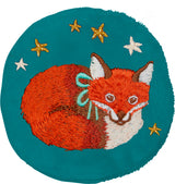 Info: wieder verwendbares Wärmekissen, weicher Stoff mit Applikationen und Stickereien