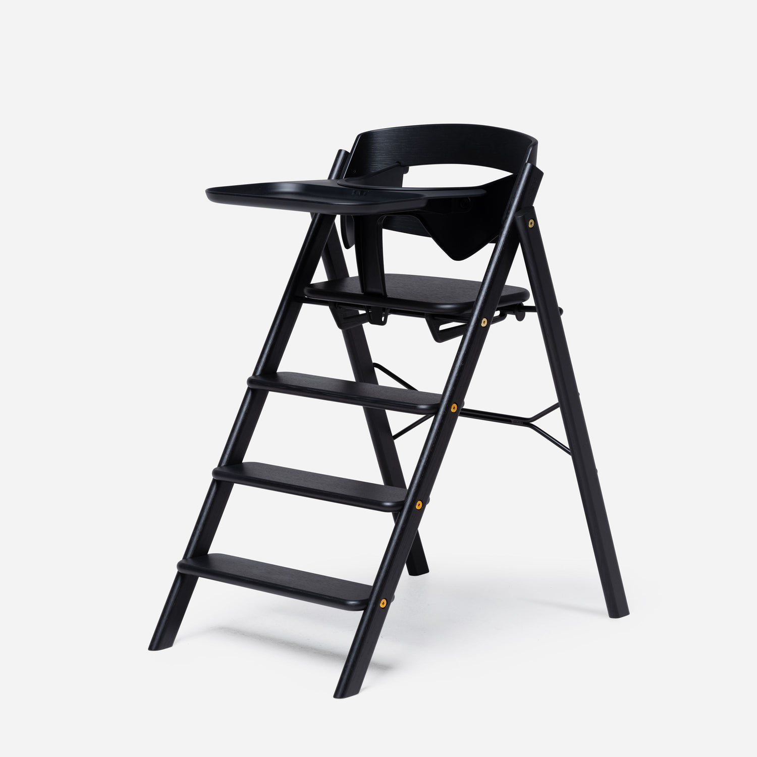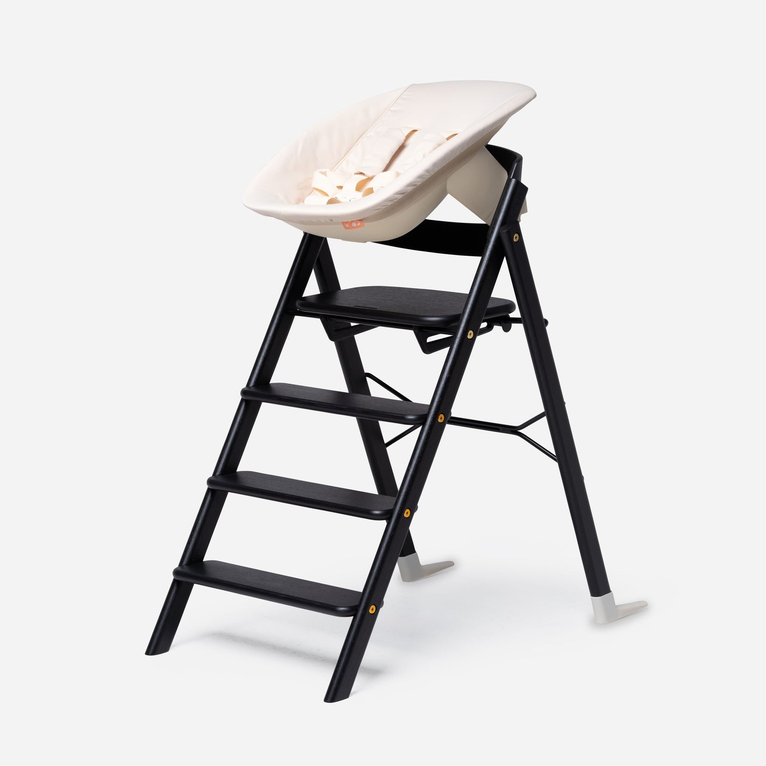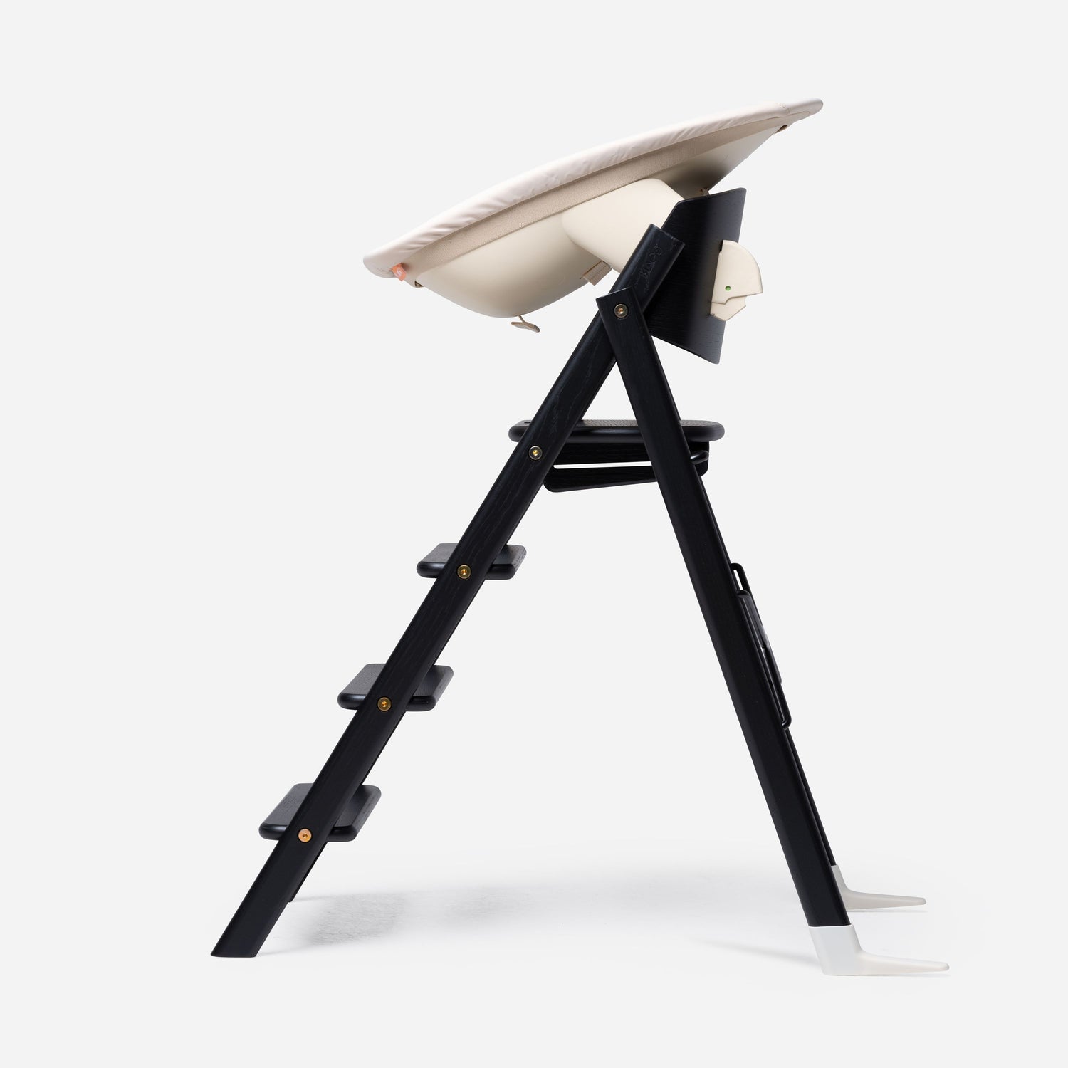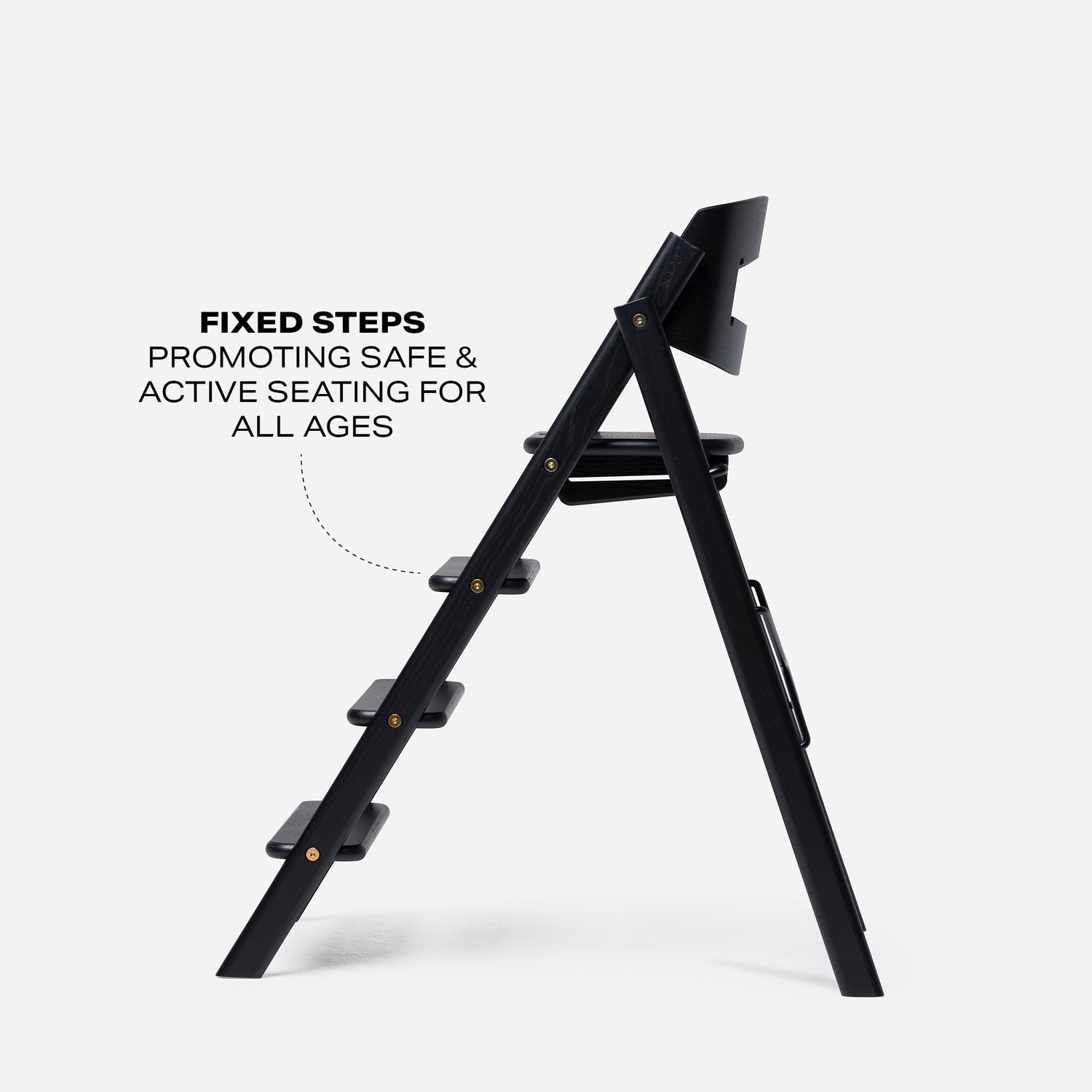 Die feste Leiter ist ebenfalls einzigartig. Die Leitern laden das Kind dazu ein, selbstständig auf den KAOS Klapp-Hochstuhl zu klettern und herunterzuklettern.