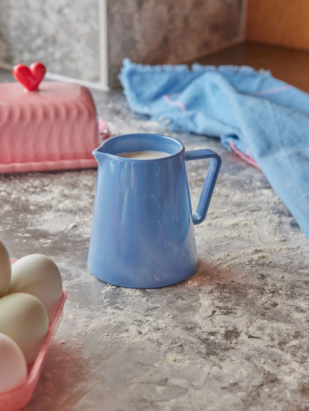 Mit diesem niedlichen blauen Milchkännchen von Rice aus Melamin bringst du Farbe auf deine Kaffeetafel.