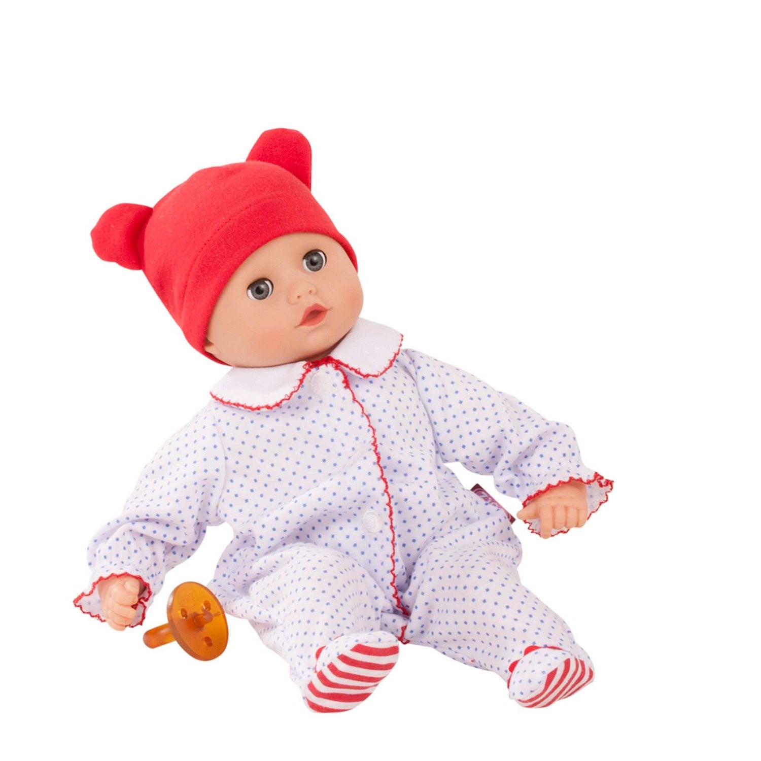 Ein Liebling aus der zauberhaften Puppenwelt der Firma Götz. Dieses süße Kerlchen, ist eine Puppe, mit der das Rollenspiel realitätsnah gestaltet werden kann.