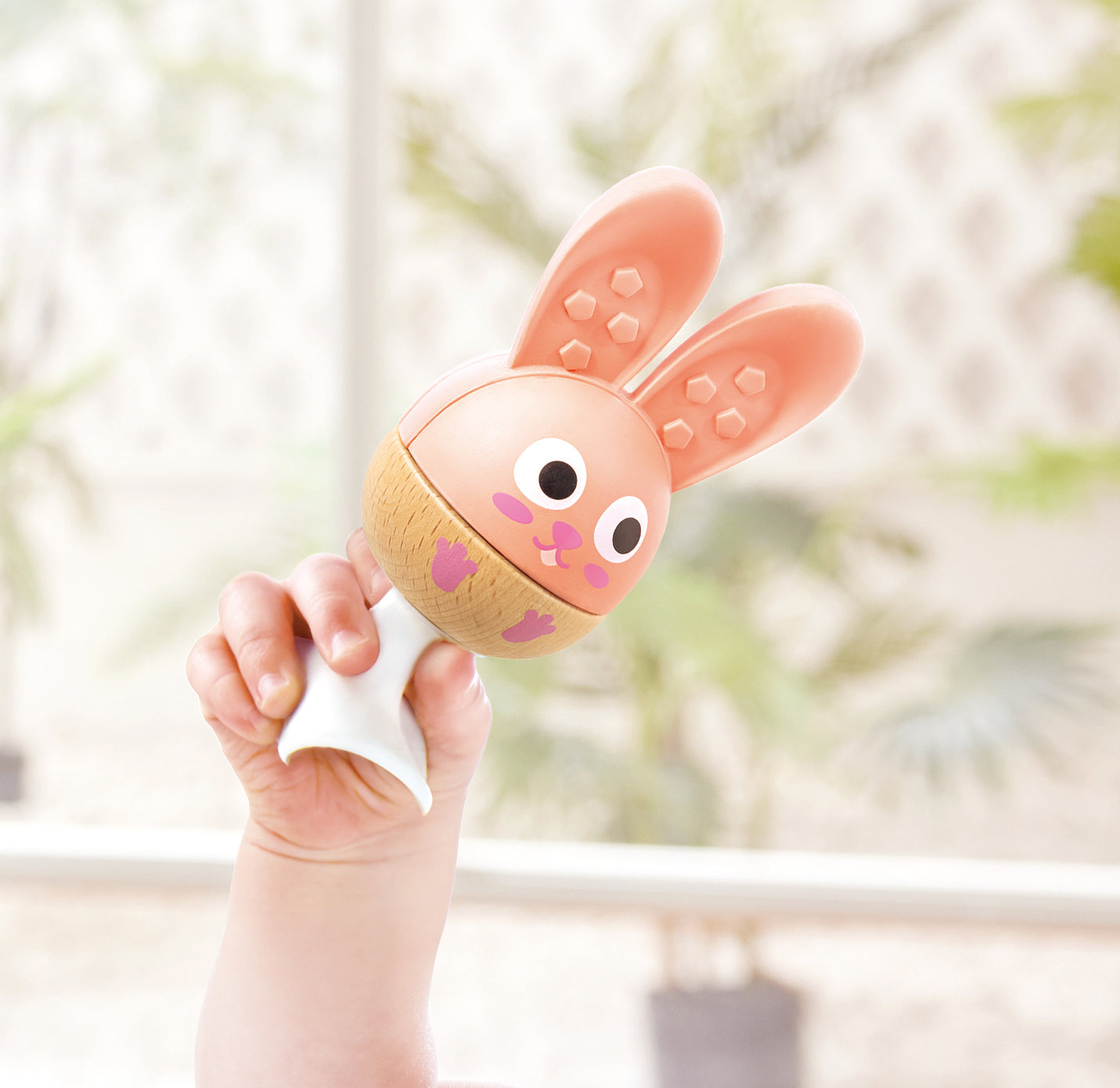 Das Rassel-Trio Hase, Küken und Maus ist aus kindersicherem, BPA-freiem Silikon und Buchenholz hergestellt. Sie wurden speziell für kleine Hände entwickelt.