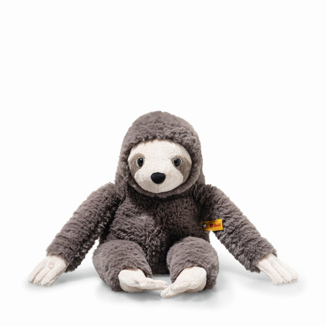 Das 35 cm große Faultier Sanny von Steiff ist ein kuscheliger Begleiter für gemütliche Stunden. Mit seinem dunkelgrauen Plüsch lädt es zum Schmusen und Träumen ein. Dank der Granulatgewichtssäckchen in den Füßen und im Gesäß bleibt das Dreifinger-Faultier ruhig und gelassen liegen. Seine fröhlich gelassenen Augen strahlen Zufriedenheit aus, während seine weichen Krallen ihm erlauben, sich an seinem Spielpartner festzuhalten.
