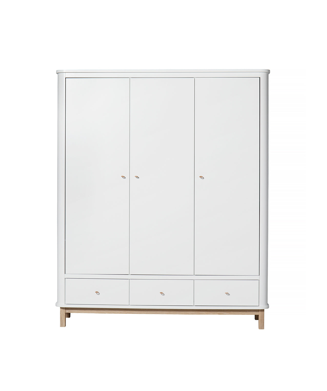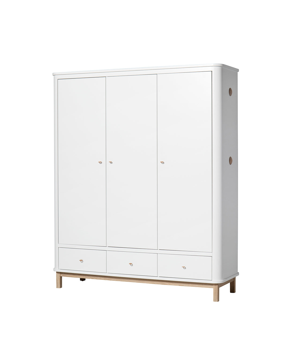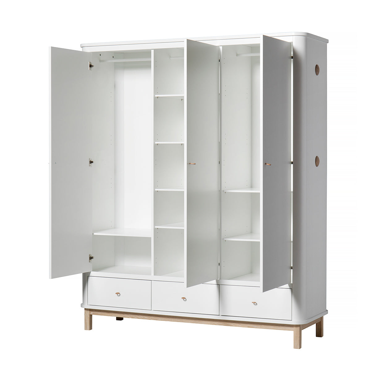 Wood Kleiderschrank 3-türig weiß/ Eiche