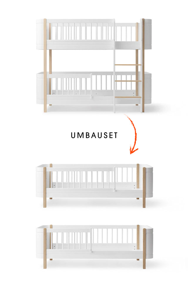 Wood Umbau-Set von Mini+ halbhohes Etagenbett zu 2 Juniorbetten weiß/ Eiche